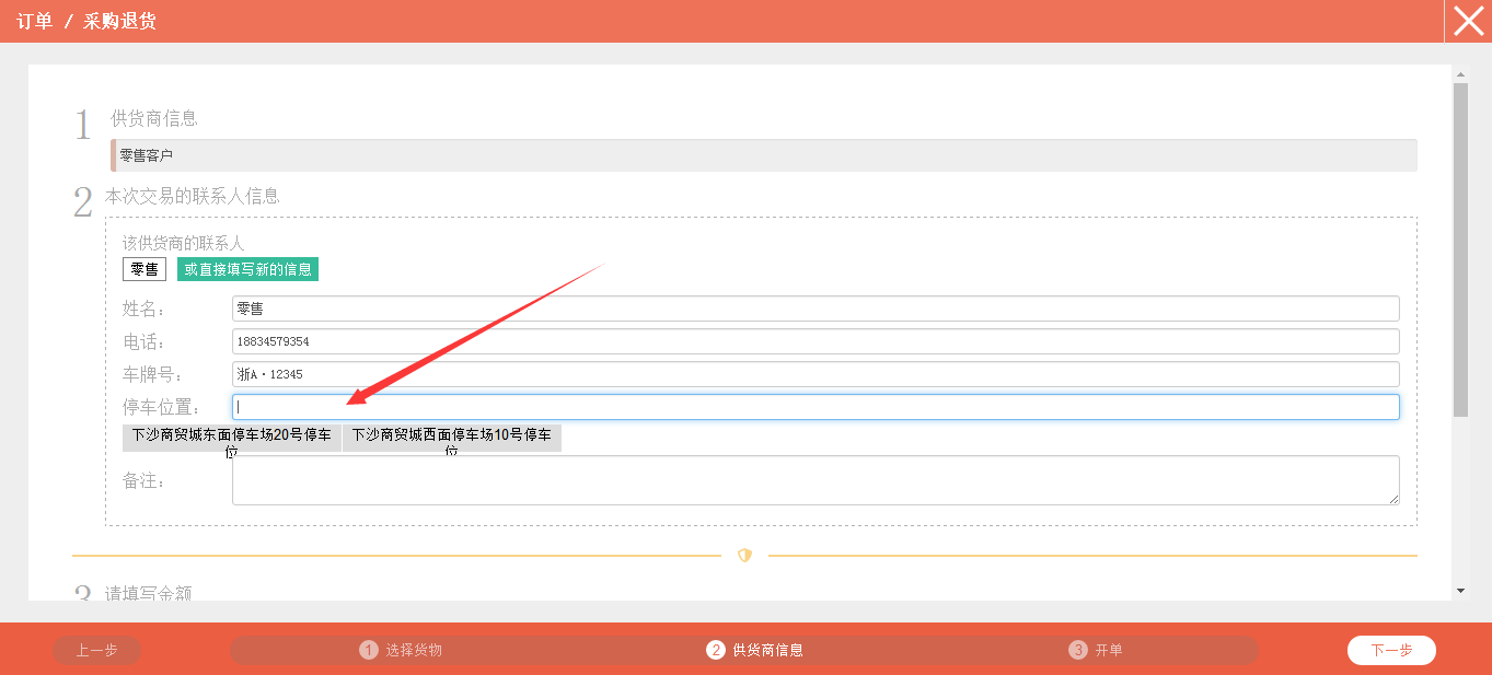 12、点击红色箭头所指的位置,选择目标停车位置。可根据实际情况填写“备注”,可填可不填。