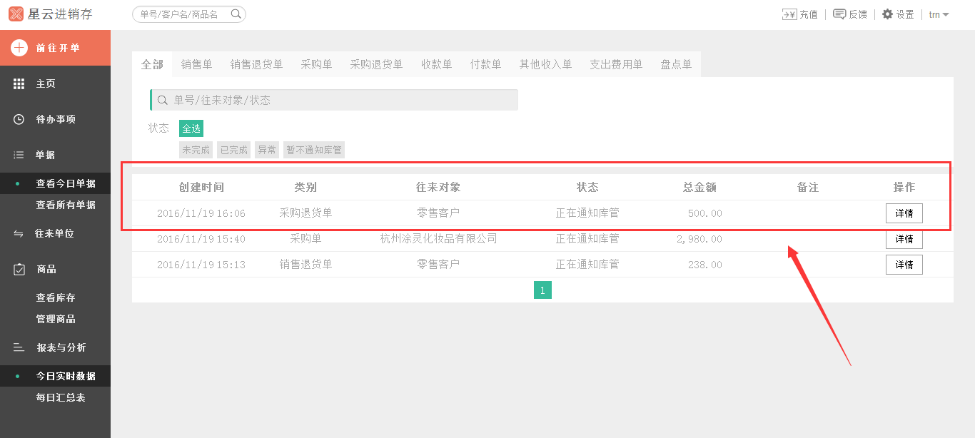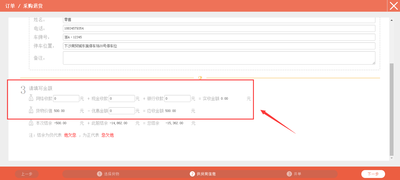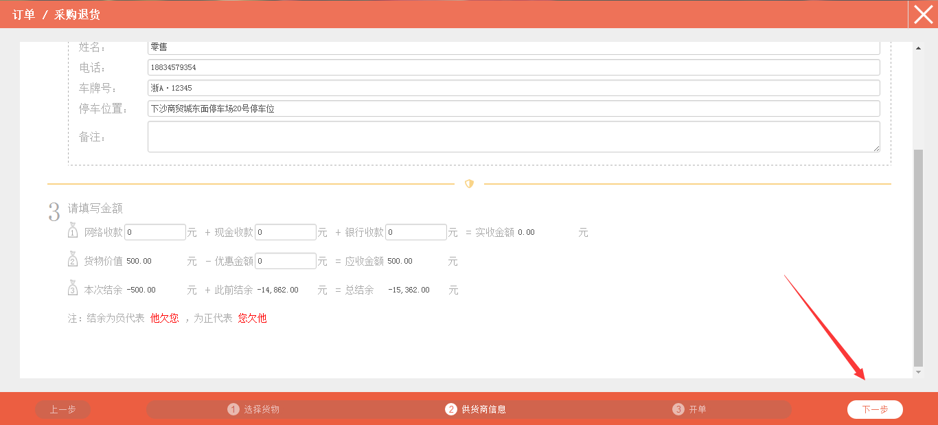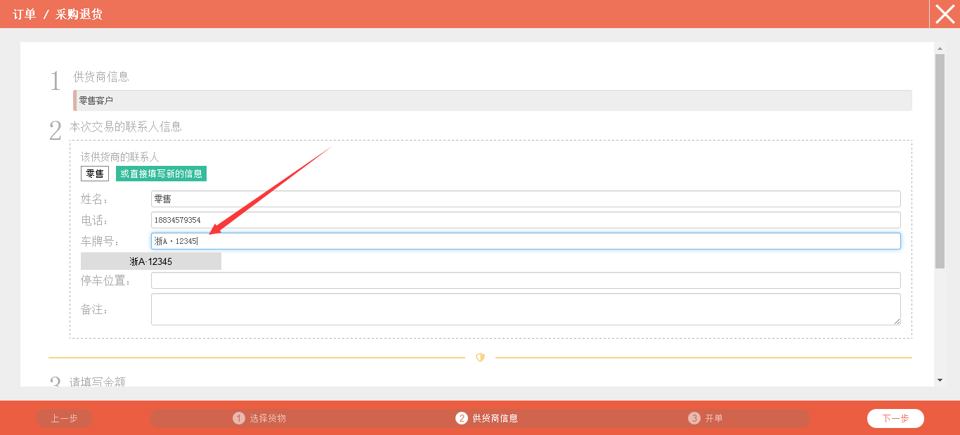 温馨提示:这里的采购退货开单不关联其他单据,比如您购买了商家的货物,不满意或者因为其他原因,想要退货了,您直接在这里开一个采购退货单即可,采购退货单是独立存在的,不需要您在系统里给该客户开过采购单。