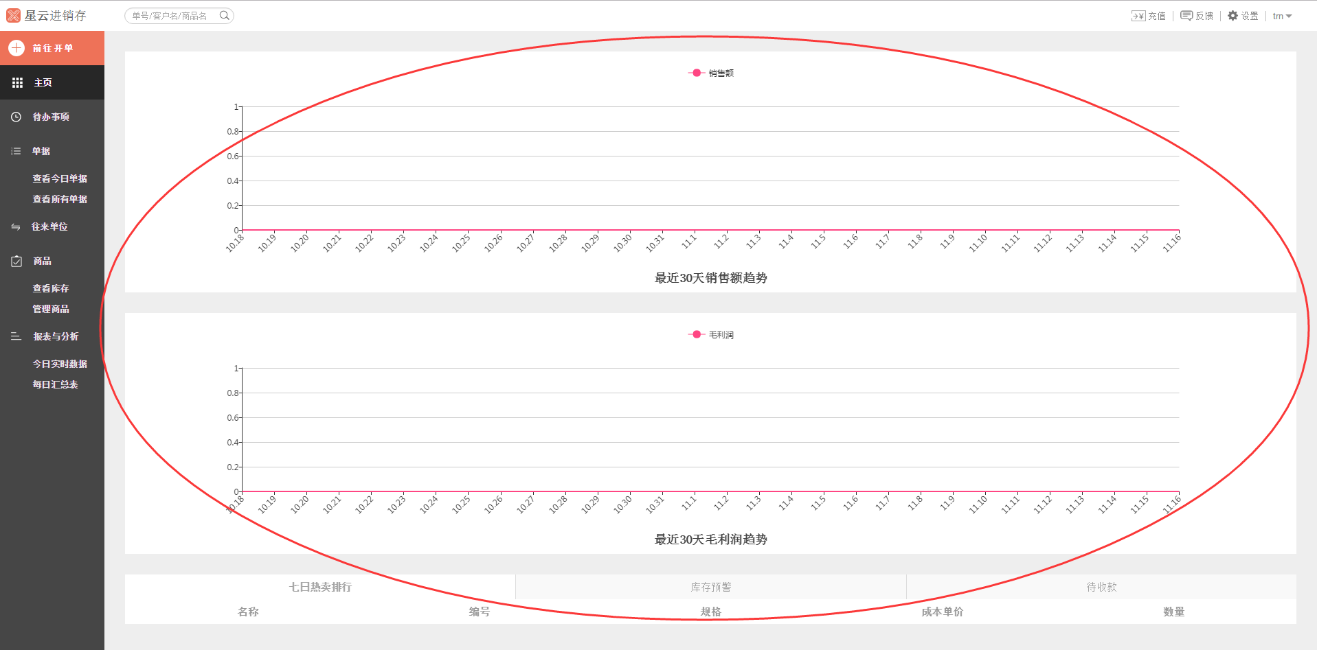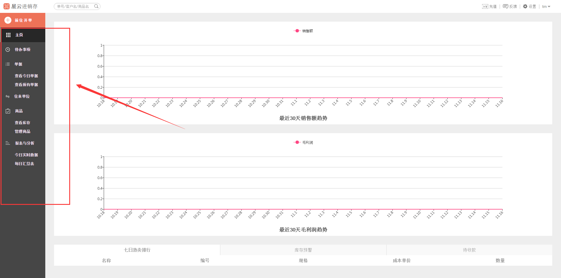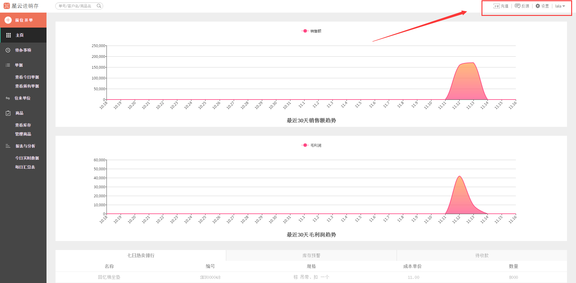- 主页(最近30天销售额趋势的查询)