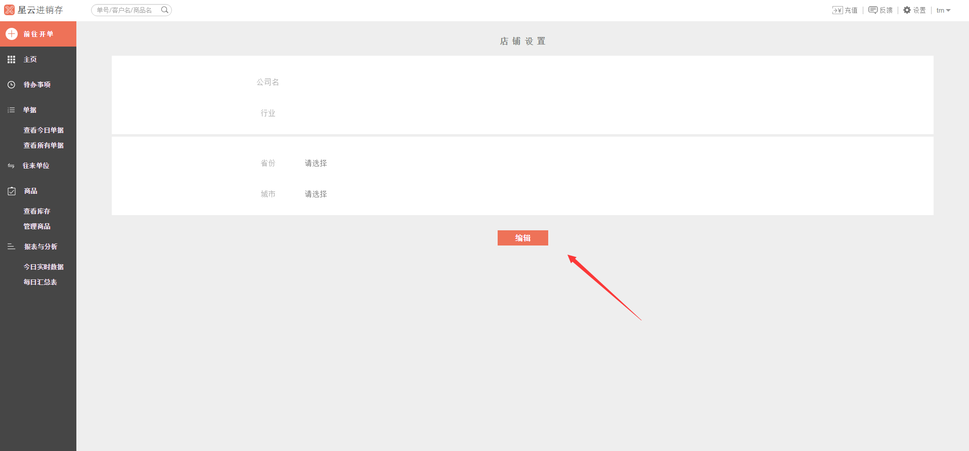 2、点击编辑按钮可对公司名、行业等进行设置。这里的公司名默认为管理员注册时填写的手机号码。